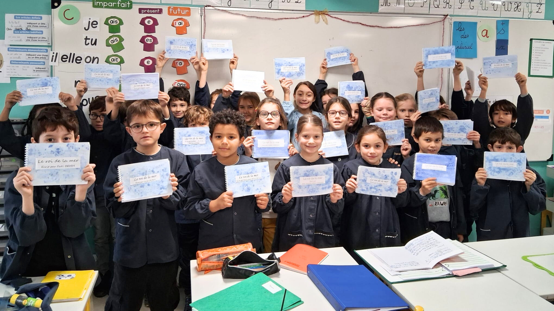 Chaque élève a imaginé et écrit une histoire intitulée « Le roi de la mer », dans laquelle les animaux marins se mobilisent pour lutter contre la pollution des océans. Ce projet a été l’occasion de réinvestir les notions d’orthographe, de conjugaison et de vocabulaire travaillées en classe, tout en développant l’imagination et le plaisir d’écrire.